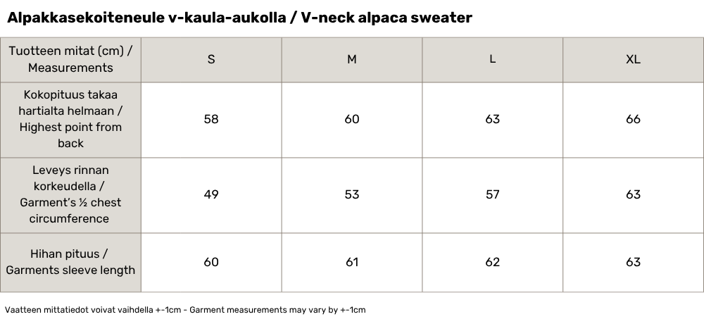 - Before you use the sweater, we recommend steaming it with a steamer or a steam iron to make the sweater soft and airy. After this, brush the sweater evenly with a clothes brush, which helps to keep the surface neat. Regular brushing and airing freshens the knitwear and reduces the need for washing. If washing is necessary, we recommend dry cleaning or gentle hand washing with a detergent suitable for natural fibers. Keep the sweater trimmed to keep it beautiful for a long time.