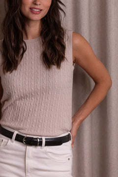 Light sleeveless cable knit cashmere top, Latte