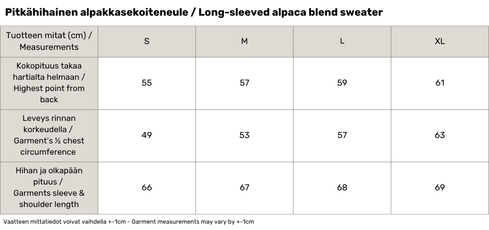 - Before you use the sweater, we recommend steaming it with a steamer or a steam iron to make the sweater soft and airy. After this, brush the sweater evenly with a clothes brush, which helps to keep the surface neat. Regular brushing and airing freshens the knitwear and reduces the need for washing. If washing is necessary, we recommend dry cleaning or gentle hand washing with a detergent suitable for natural fibers. Keep the sweater trimmed to keep it beautiful for a long time.