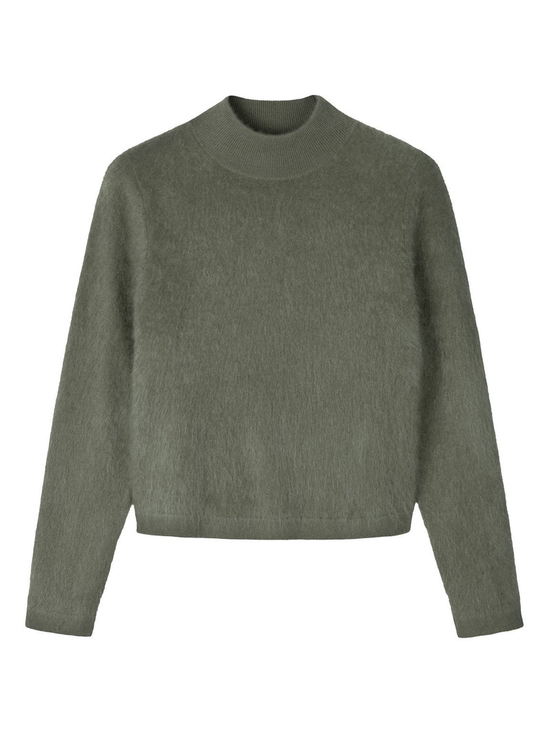 Pitkähihainen harjattu kashmirneule puolipoolokauluksella, Light olive