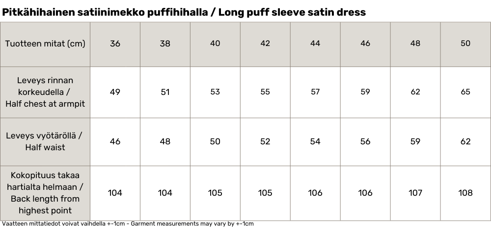 A festive long-sleeved Teness satin dress, adorned with showy puff sleeves and elaborate details. Fabric-covered buttons at the cuffs and a button fastening behind the round neckline complete the elegant look. Bust pleats add a fit to the dress, and the knee-length hem makes it versatile for both parties and special occasions. A loose belt accentuates the waist and allows for different styling options.