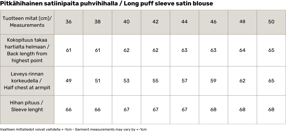 Pitkähihainen satiinipaita puhvihihalla sävyssä latte
